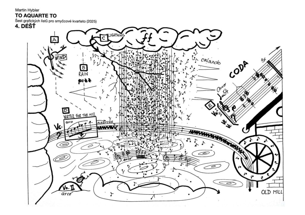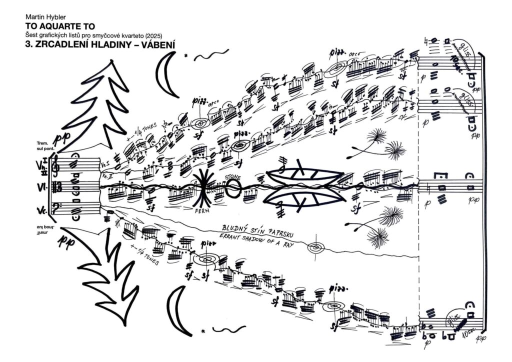 Premiéra skladby TO AQUARTE TO (šest grafických listů pro smyčcové kvarteto) představila Martina Hyblera jako autora, který suverénně překračuje hranice tradičně chápané kompozice a vstupuje do prostoru mezi hudbou, vizuálním uměním a meditativní zvukovou krajinou. Cyklus šesti grafických listů pro smyčcové kvarteto, inspirovaný vodními plochami Českého ráje, působil spíše jako živá zvuková instalace než jako klasický koncertní tvar.